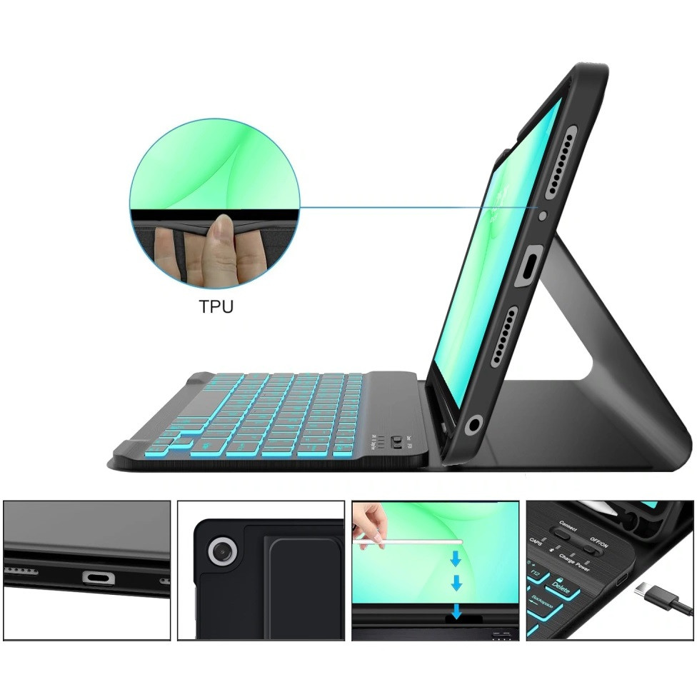 Tech-Protect Sc Pen + Keyboard Samsung Galaxy Tab A9+ / Tab A11+ oldalra nyíló, kitámasztható mappa tok ceruza tartóval, mágneses rögzítés, billentyűzettel, fekete
