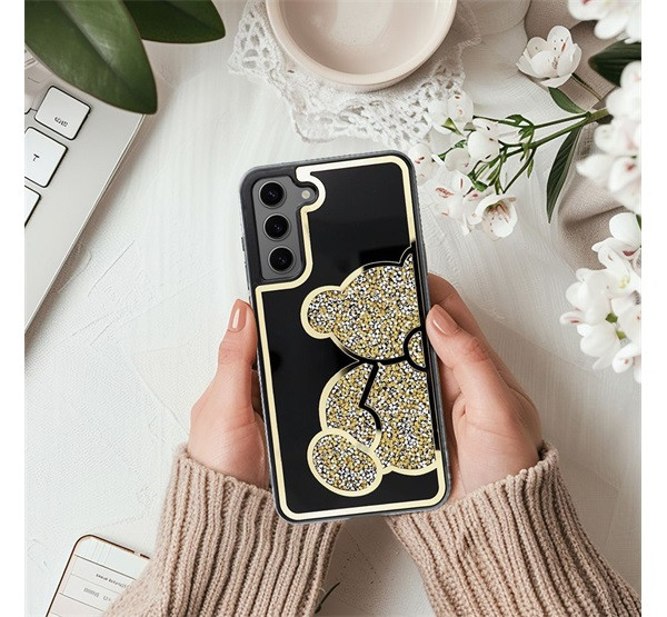A Teddy Bear egy stílusos és funkcionális tok, amely jellegzetes csillogó mackó dizájnnal, kiemelkedő élekkel és műanyag kivitelezéssel rendelkezik.