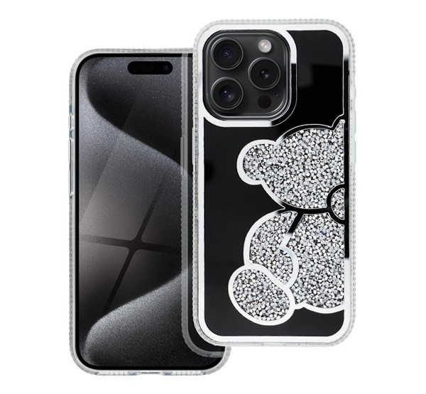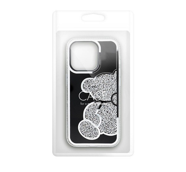 Teddy Bear iPhone 16 Pro Max csillogó köves tok, ezüst