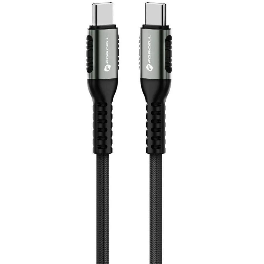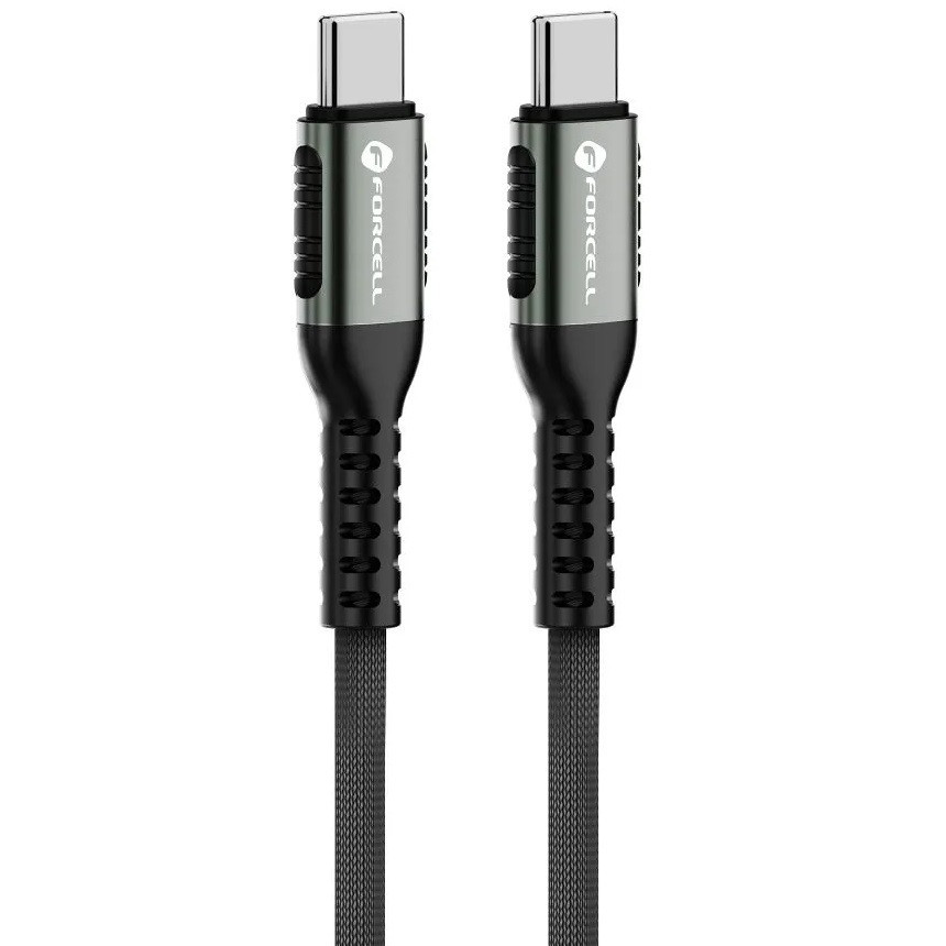 USB Type-C töltő- és adatkábel, USB Type-C, 120 cm, 5000 mA, 240W, törésgátlóval, gyorstöltés, PD, QC 4.0, cipőfűző minta, Forcell F-Energy C263, fekete