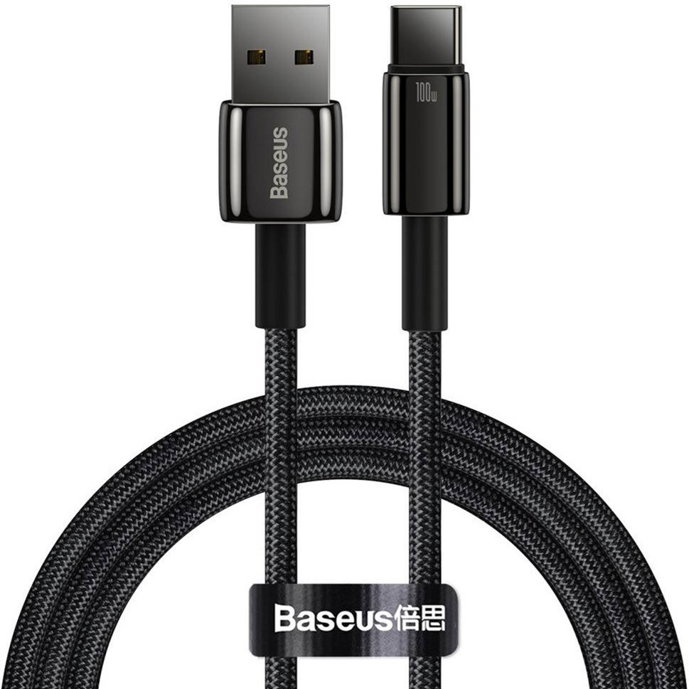 USB töltő- és adatkábel, USB Type-C, 100 cm, 100W, gyorstöltés, QC, Baseus Tungsten Gold, CAWJ000001, fekete