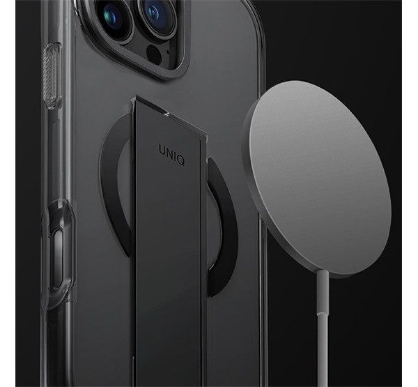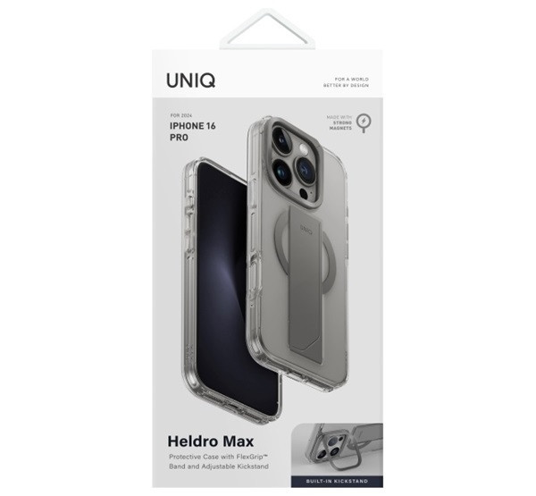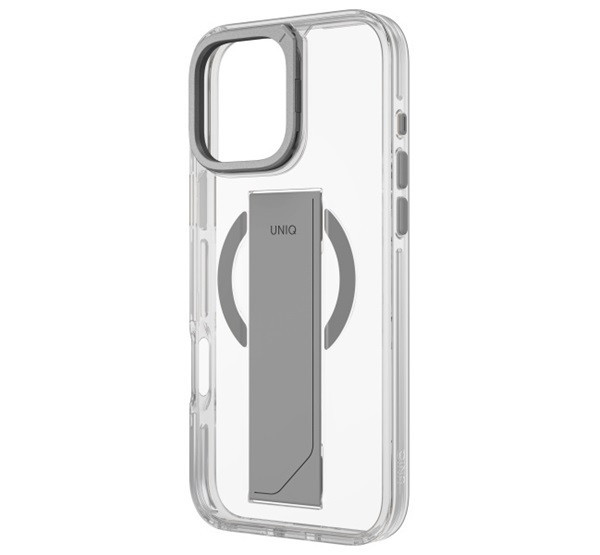 Uniq Heldro Max iPhone 16 Pro MagSafe tok kitámasztóval, átlátszó