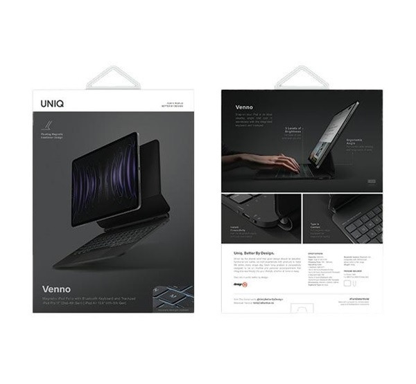 Uniq Venno Apple iPad Pro 11”(2022/21) / Air 10.9 (2022/20) mágneses bluetooth billentyűzet, fekete