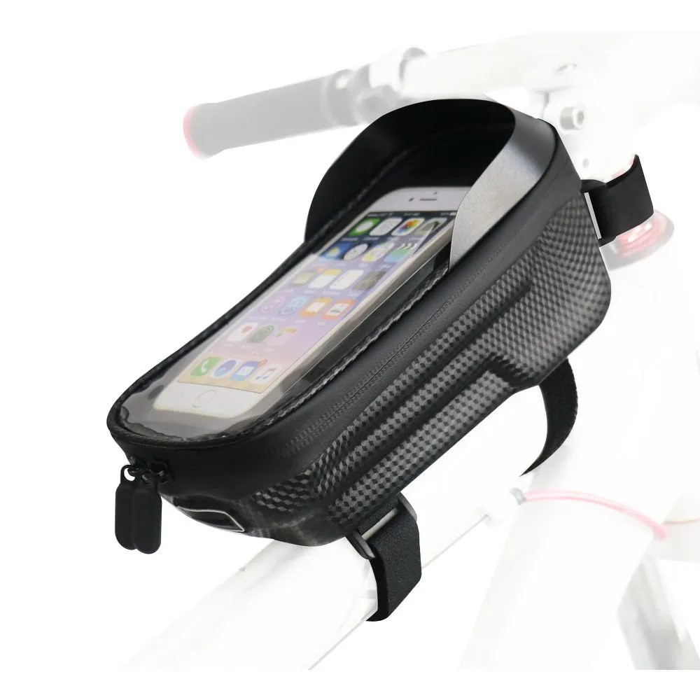 Univerzális, kerékpáros / biciklis tartó, táska, 5 - 6.2", vázra szerelhető, vízálló, napellenző, FSBFB-451, fekete