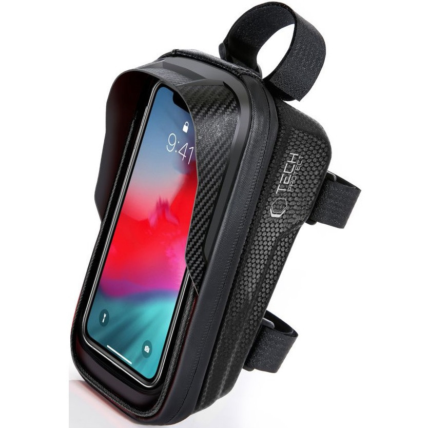 Nagy tartósságú és vízálló anyagból készült. Tárolhat benne akár kisebb biciklis eszközöket is. A telefon zseben lévő átlátszó fólia érintés-érzékeny (mérete: 163 x 91mm), ami elősegíti, hogy könnyebben tudja kezelni a telefonját kerékpározás közben is és a tető formájú napellenző megakadályozza, hogy erős napfényben romoljon a képernyő olvashatósága. Kompatibilis a legtöbb 7" - os (Apple iPhone XS Max méretű) vagy annál kisebb készülékkel. Az alsó részen található vastagabb ütéscsillapító betét védi a benne lévő tárgyakat.