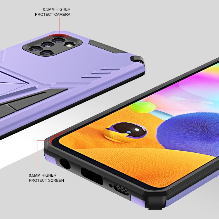 Xiaomi Redmi Note 9 5G, Műanyag hátlap védőtok szilikon belső, közepesen ütésálló, kitámasztóval, Wooze Supportive Care, lila