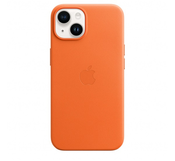 Apple iPhone 14 MagSafe-rögzítésű bőr tok,  Narancs