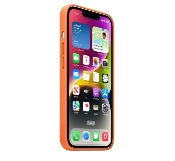Apple iPhone 14 MagSafe-rögzítésű bőr tok, Narancs