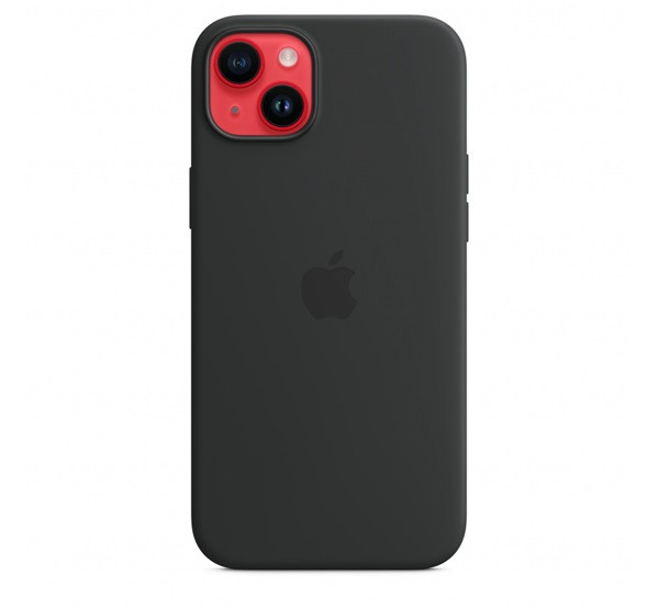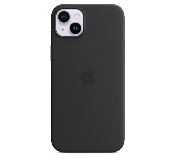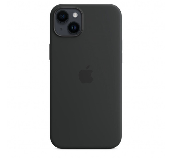 Apple iPhone 14 Plus MagSafe-rögzítésű szilikon tok, Éjfekete