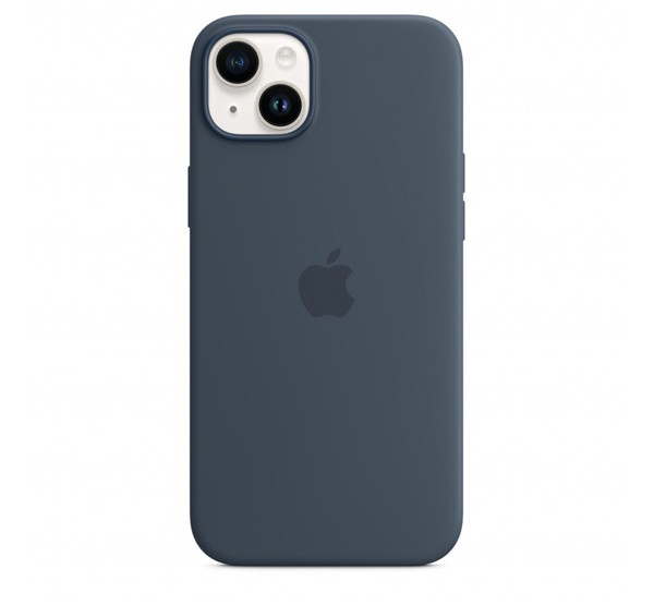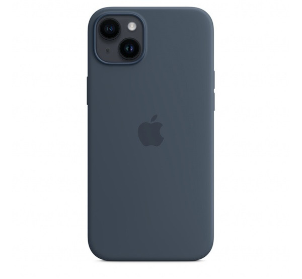 Apple iPhone 14 Plus MagSafe-rögzítésű szilikon tok, Viharkék