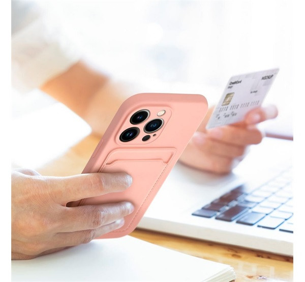 Apple iPhone 16 Plus kártyatartós szilikon tok, rózsaszín