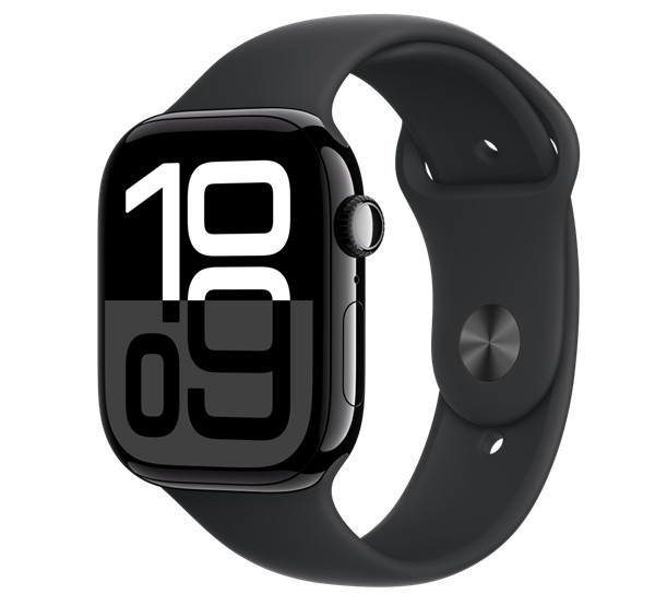 Apple Watch S10 Cellular kozmoszfekete alumíniumtok, fekete sportszíjjal, 46mm, M/L