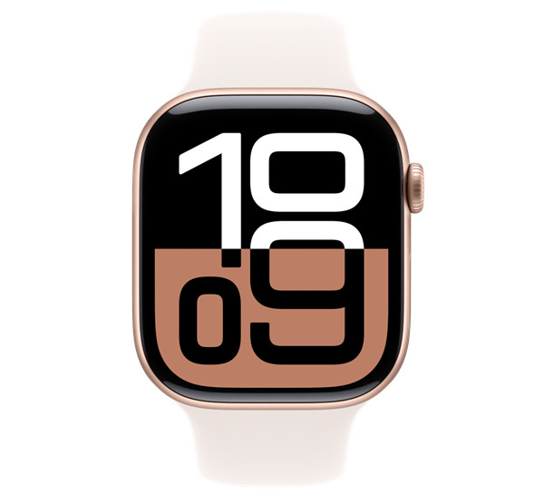 Apple Watch S10 Cellular rozéarany alumíniumtok, lágy rózsaszín sportszíjjal, 46mm, M/L