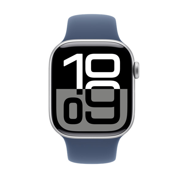 Apple Watch S10 GPS ezüst alumíniumtok, Denim Sport szíjjal, 42mm, S/M