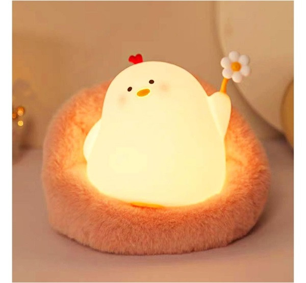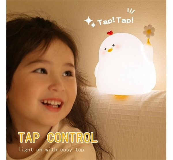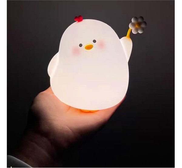 Art Deco virágos csirke alakú éjjeli lámpa, USB, 1200mAh, fehér