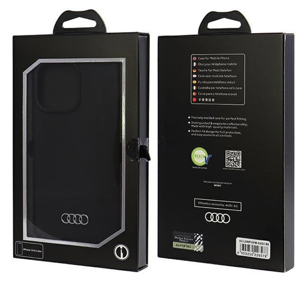A szilikon kollekciót a jellegzetes fém Audi logó díszíti, hangsúlyozva a termék exkluzivitását és hitelességét.