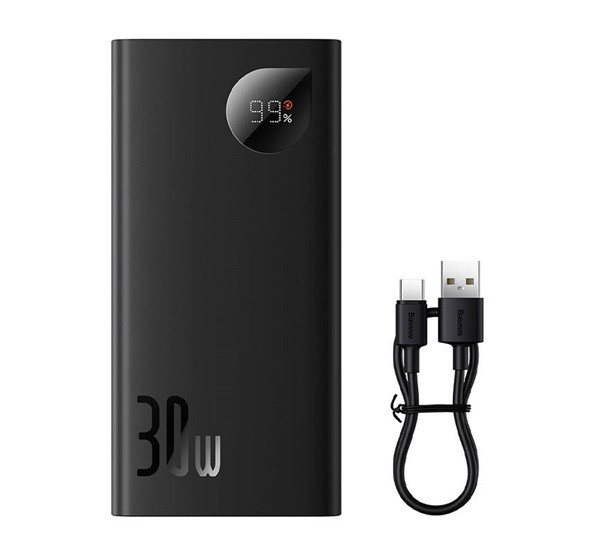 Baseus Adaman2 Power bank / külső akkumulátor, 10000mAh, 2xUSB, USB-C, 30W fekete