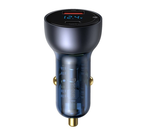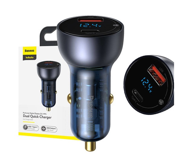 Baseus autós szivargyújtó töltő digitális kijelzővel, USB-A + USB-C, QC3.0+PD, 5A, 65W, fekete