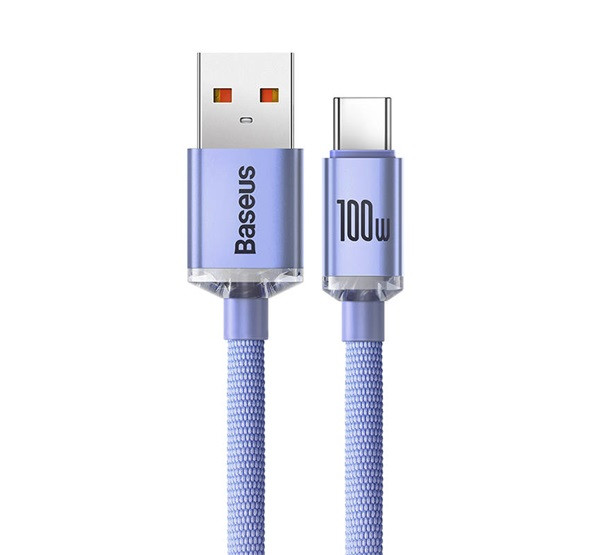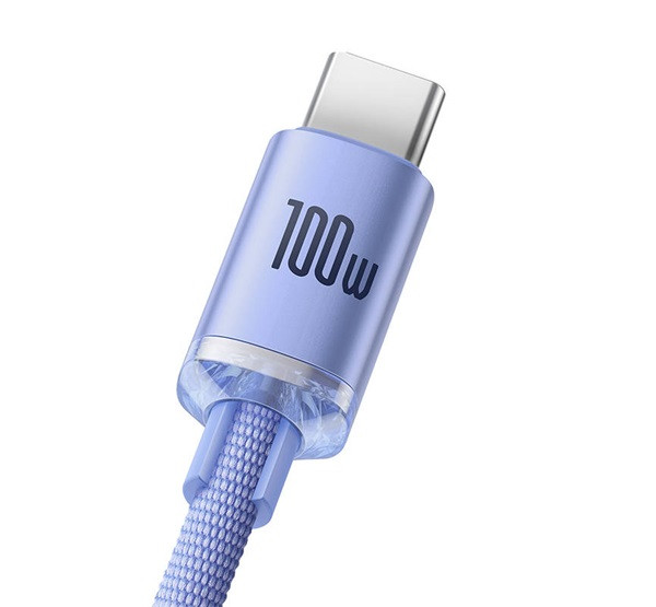 Baseus Crystal Shine USB / USB-C töltő- és adatkábel, 100W, 2m, ibolya