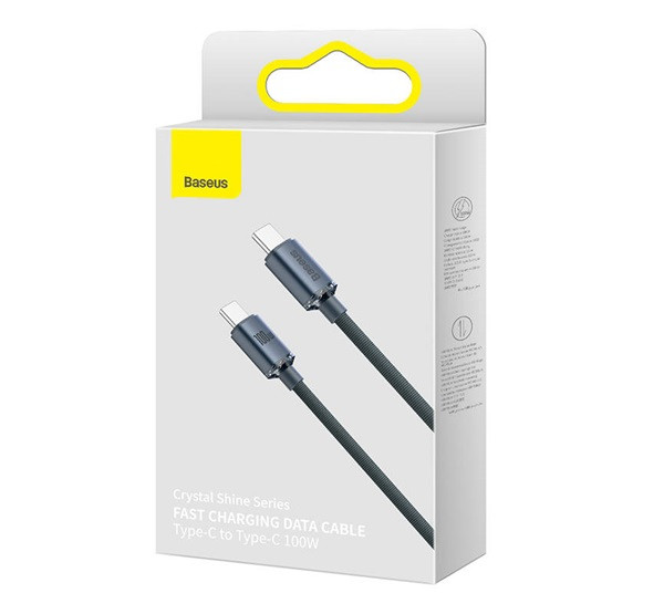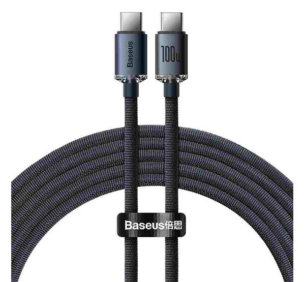 Baseus Crystal Shine sorozatú töltő- és adatkábel USB-C csatlakozókkal mindkét végén, támogatott teljesítmény 100W-ig.