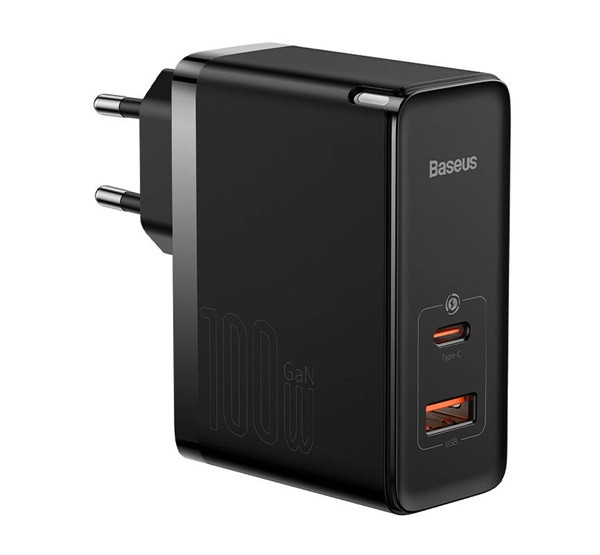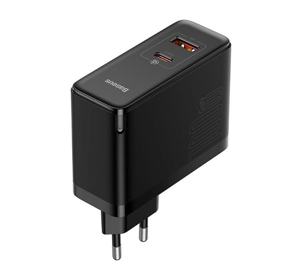 Baseus GaN USB-C + USB fali töltő, 100W + 1m kábel