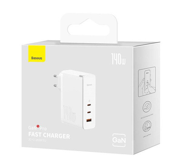 A Baseus GaN5 Pro akár 140W teljesítményt is biztosít, amely elegendő energia az iPhone, iPad, MacBook Pro/Air, Samsung Galaxy és más USB-C eszközök gyors töltéséhez.