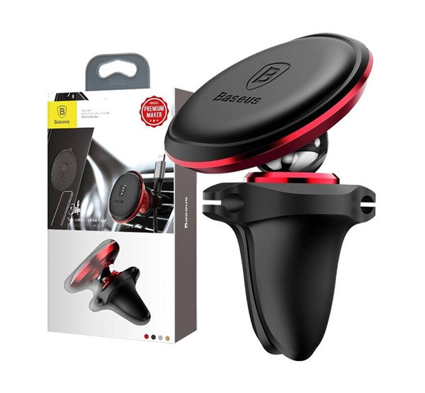 Baseus Magnetic Air Vent Mágneses autós telefontartó kábelcsipesszel, piros
