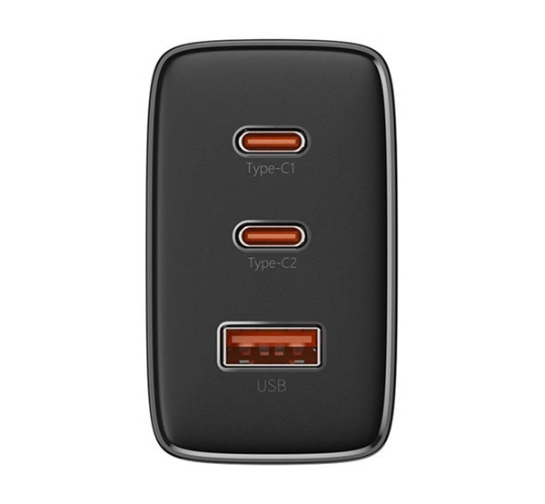 Kimenetek: A töltő két USB Type-C porttal és egy hagyományos USB porttal rendelkezik. A két USB Type-C porton keresztül gyors és hatékony módon lehet tölteni különböző eszközöket, mint például okostelefonok, táblagépek vagy laptopok.