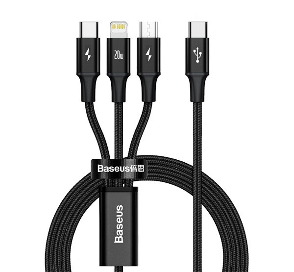 A Baseus CAMLT-SC01 egy praktikus kábel, amely lehetővé teszi, hogy egyszerre akár 3 eszközt is töltsön. Lightning, USB-C és micro-USB csatlakozóval rendelkezik, így mindenféle készülékkel kompatibilis - a legújabb okostelefonoktól a háztartási kisgépekig.