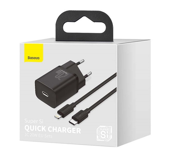 Baseus Super Si USB-AUSB-C gyorstöltő 1 m-es USB-AUSB-C-Lightning kábellel, 20W, fekete