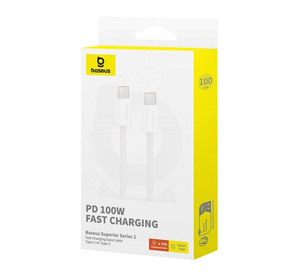 Baseus Superior 2 100W 1m USB-C-USB-C gyorstöltő kábel (fehér).