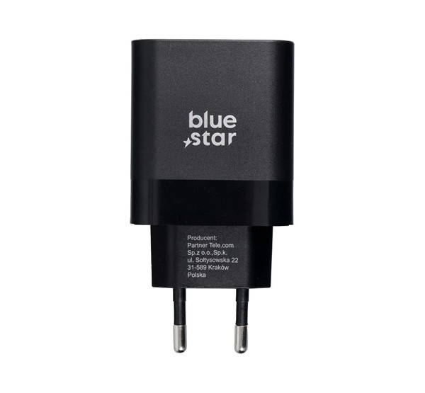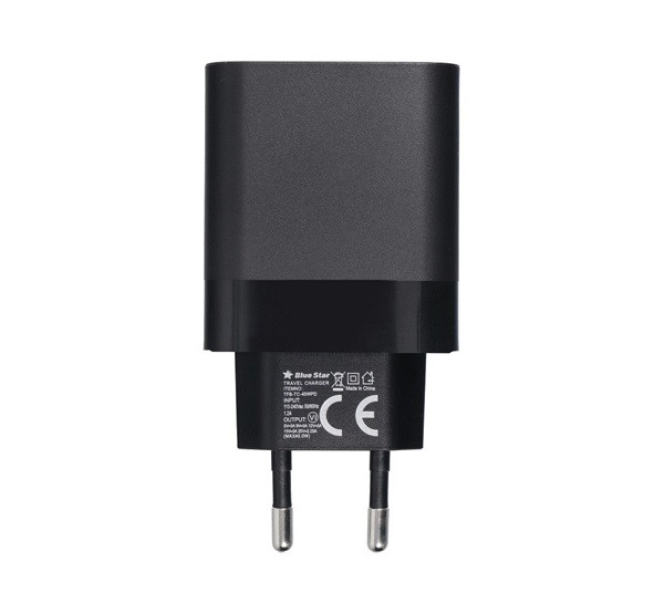 Blue Star hálózati töltő USB-C + 3A PD, 45W, QC 4.0 funkció, fekete