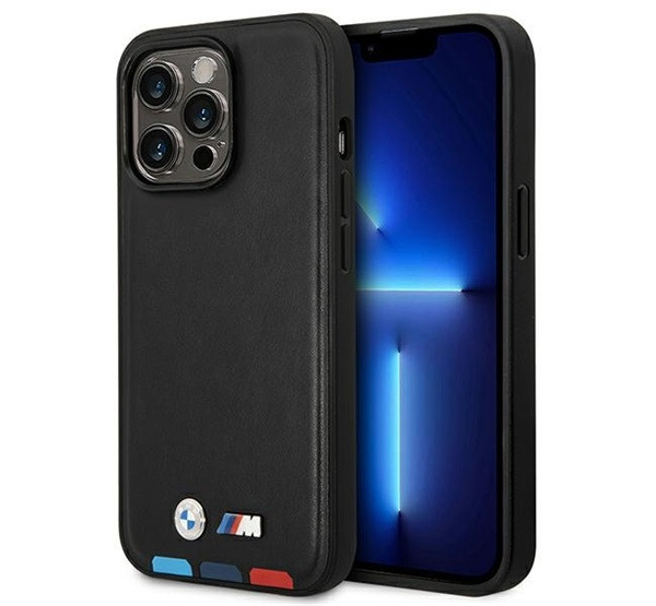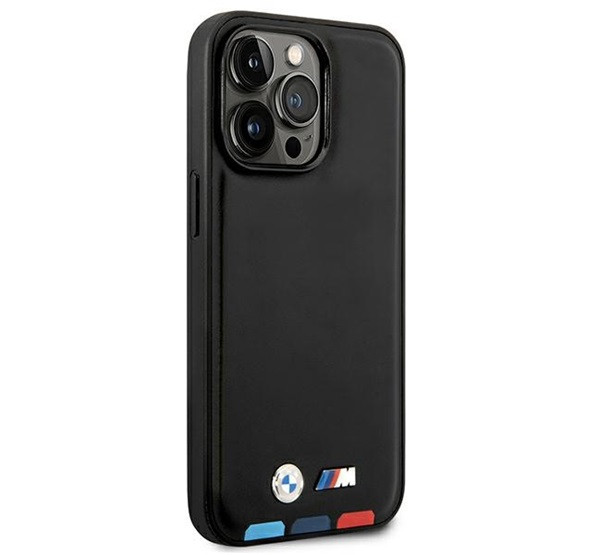 BMW Leather Stamp Tricolor Magsafe Apple iPhone 14 Pro hátlap tok, fekete