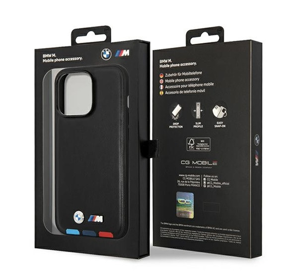 Az exkluzív BMW tok a Leather Stamp Tricolor hardcase kollekcióból polikarbonát és kiváló minőségű bőr kombinációjából készült, a szélek pedig rugalmas TPU-ból készültek a könnyű illeszkedés érdekében. A tokot a BMW márkával szerves részét képező, hővel fröccsöntött trikolor díszítés díszíti. A finom bőrrel és stílusos részletekkel a kollekció minden készüléknek klasszikus, elegáns formát kölcsönöz, a koronát és a minőség megerősítését pedig a fém BMW logó jelenti.