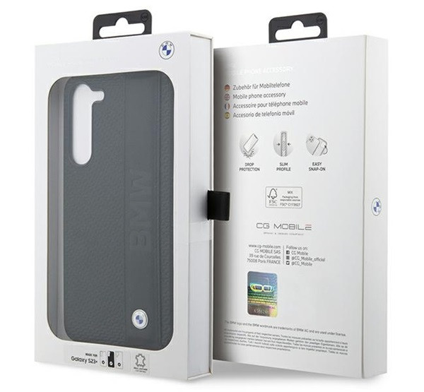 Az exkluzív BMW tok a Leather Stamp Tricolor hardcase kollekcióból polikarbonát és kiváló minőségű bőr kombinációjából készült, a szélek pedig rugalmas TPU-ból készültek a könnyű illeszkedés érdekében. A tokot a BMW márkával szerves részét képező, hővel fröccsöntött trikolor díszítés díszíti. A finom bőrrel és stílusos részletekkel a kollekció minden készüléknek klasszikus, elegáns formát kölcsönöz, a koronát és a minőség megerősítését pedig a fém BMW logó jelenti.
