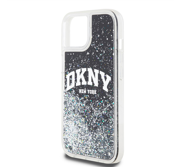 DKNY Liquid Glitter Arch Logo iPhone 14 hátlap tok, fekete
