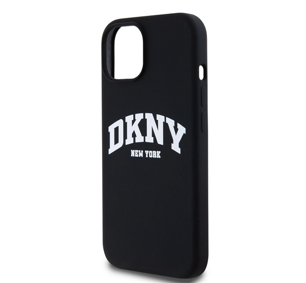 DKNY Liquid Silicone Arch Logo MagSafe iPhone 15 hátlap tok, fekete