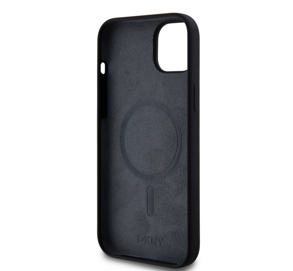 DKNY Liquid Silicone Arch Logo MagSafe iPhone 15 Plus hátlap tok, fekete