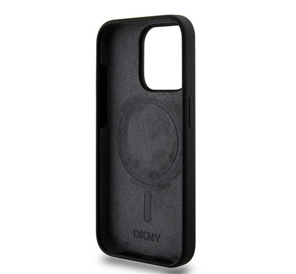 DKNY Liquid Silicone White Printed Logo Apple iPhone 13 Pro / 13 Magsafe hátlap tok, fekete, DKHMP13LSNYACH