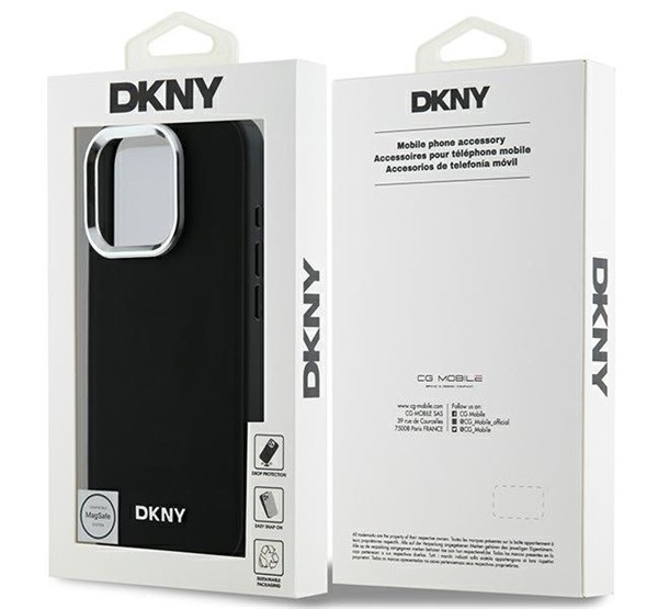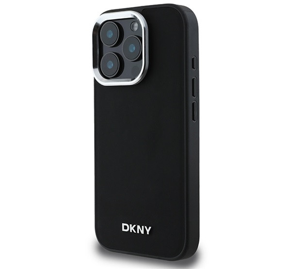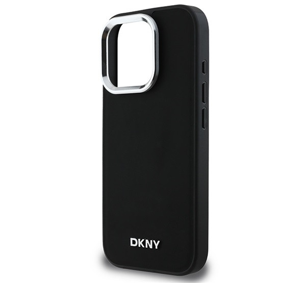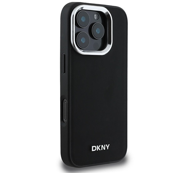 DKNY Plain Silver Logo iPhone 16 Pro Max MagSafe hátlap tok, fekete DKHMP16XPSCMCLK