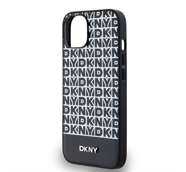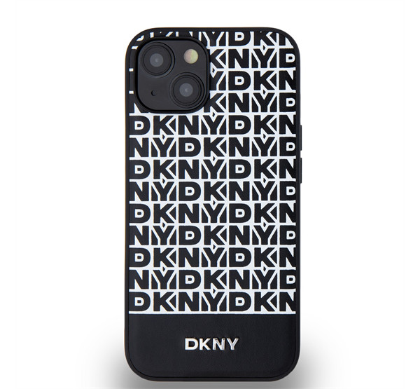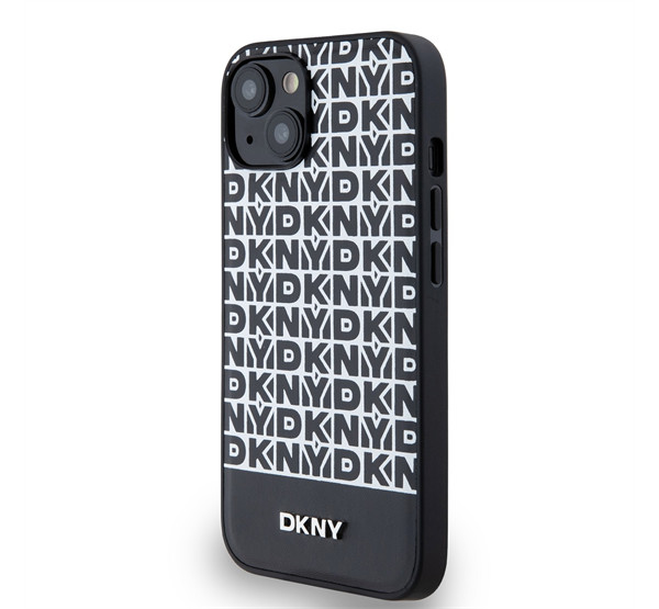DKNY PU Leather Repeat Pattern Bottom Stripe Apple iPhone 14 Magsafe kompatibilis hátlap tok, fekete