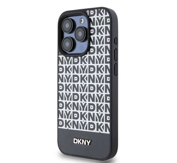 DKNY PU Leather Repeat Pattern Bottom Stripe iPhone 14 Pro hátlap tok, fekete