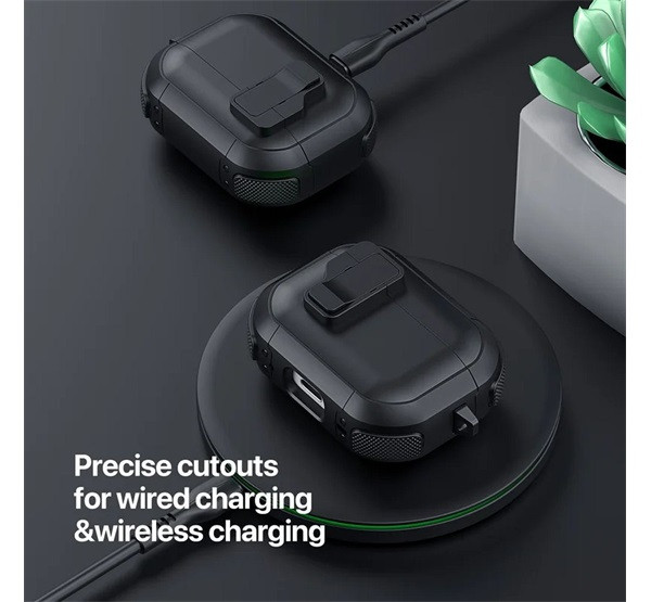 A tok két részből áll - a fedélből és a testből -, így könnyen felszerelhető vagy eltávolítható anélkül, hogy korlátozná a fejhallgatóhoz való hozzáférést. A tokot könnyen kinyithatod, hogy gyorsan kivehesd az AirPods-okat, amikor csak szükséged van rájuk. A precízen vágott nyílások támogatják a vezeték nélküli és vezetékes töltést anélkül, hogy a tokot el kellene távolítani, és nem takarják el a töltésjelző lámpát, így könnyen nyomon követheted az akkumulátor állapotát.
