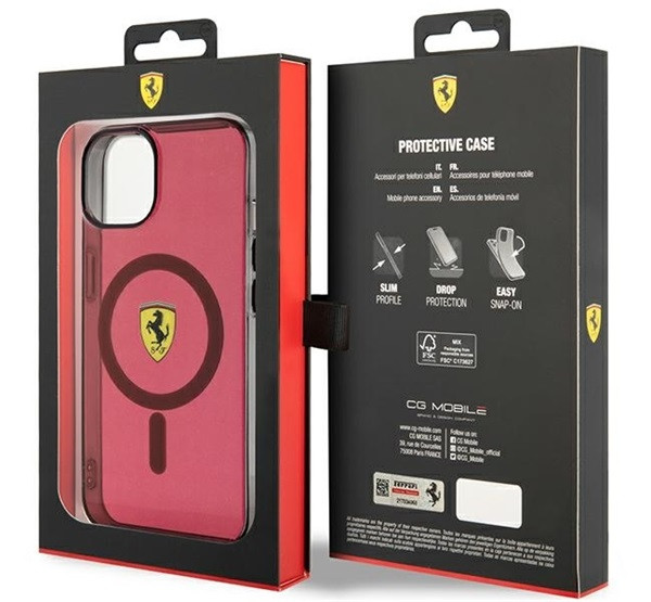 Ferrari Translucent iPhone 14 / 15 / 13 MagSafe kompatibilis kemény hátlap tok, piros FEHMP14SURKR