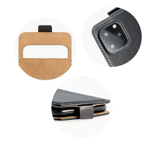 Elegáns, klasszikus, kiváló minőségű anyagokból készült, Ultra Slim modellhez szabott függőleges tok. A vastag varrással megerősített szélek garantálják a tok tartósságát.