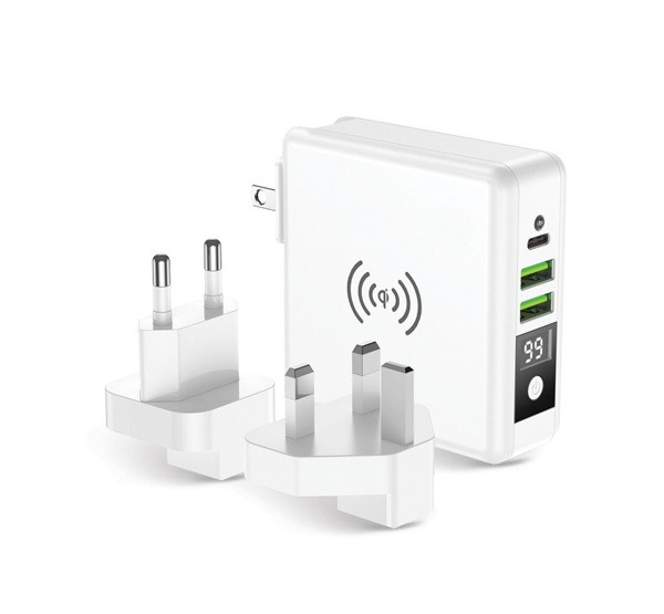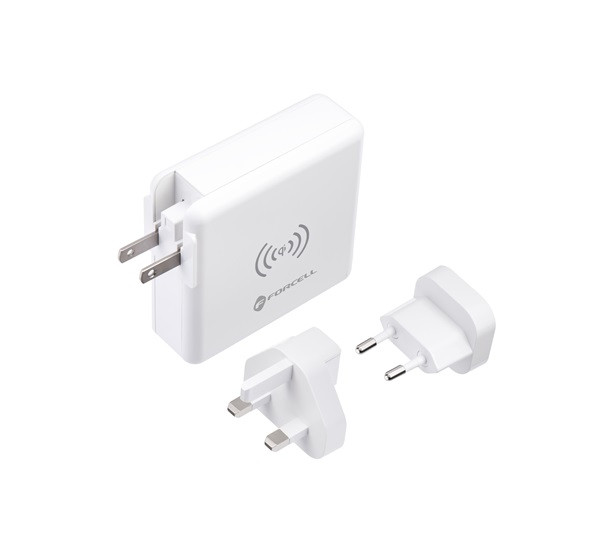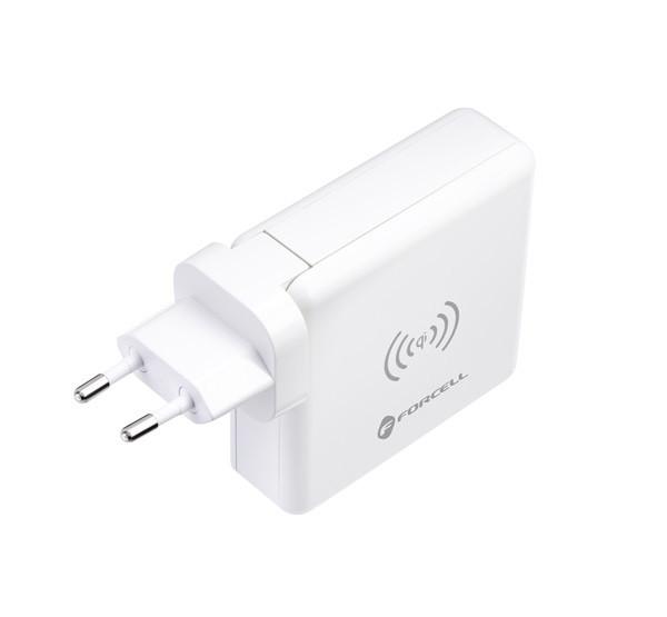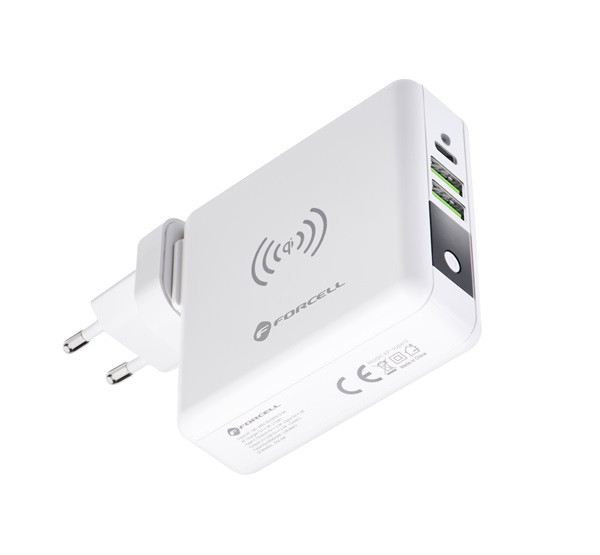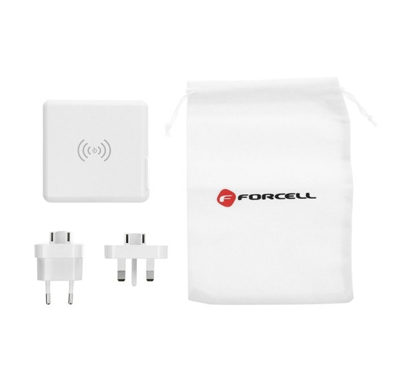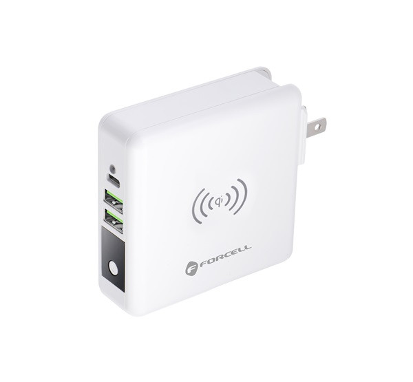 Forcell 4in1 univerzális töltő, Power bank / külső akkumulátor / power bank vezeték nélküli töltéssel, USB/USB-C, (15W/8000mAh) fehér