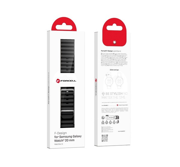 A Forcell F-Design szíjat a Galaxy Watch számára készítették. Kiváló minőségű anyagbóll készült, tartós és rugalmas, és egész napos viselési kényelmet biztosít. Az univerzális, klasszikus kialakításnak köszönhetően tökéletesen illeszkedik a különböző stílusokhoz.