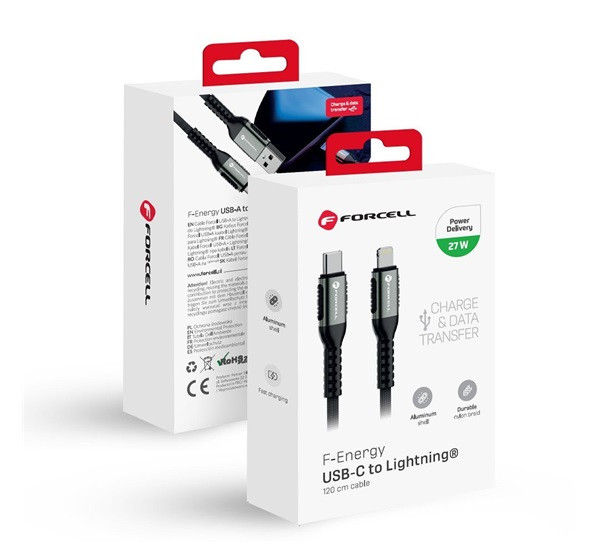 Forcell F-Energy C259 USB-C-Lightning töltő / adatkábel, PD 3A, 27W, 1,2m, fekete