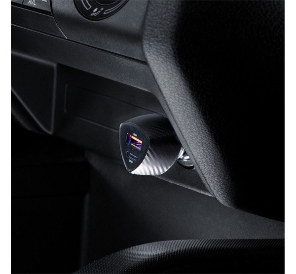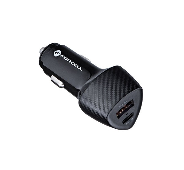 Rendkívül sokoldalú autós töltő a FORCELL CARBON sorozatból. Két töltőporttal felszerelve: USB-C, USB. Támogatja a QC 3.0 és PD 3.0 gyorstöltési protokollokat. Többszintű biztonsági rendszerrel rendelkezik.