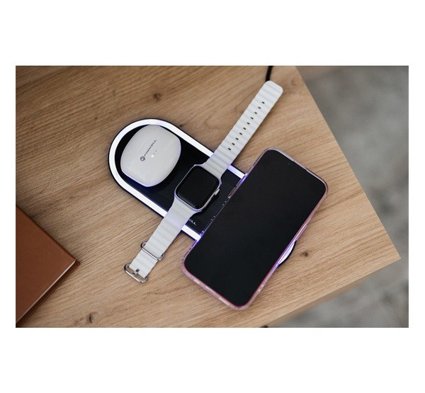 A Forcell F-ENERGY Ellipse 3 az 1-ben induktív töltő megbízható és sokoldalú eszköz okostelefon, óra és TWS fejhallgató egyidejű töltésére, több kábel használata nélkül. Támogatja az összes olyan eszköz töltését, amely támogatja a Qi töltési szabványt. Kompatibilis Apple termékekkel: iPhone, Apple Watch, AirPods. A három eszköz egyidejű töltésének, a vékony kialakításnak, a háttérvilágításnak és a könnyű hordozhatóságnak köszönhetően a termék kényelmet, hatékonyságot és stílust biztosít egyben.